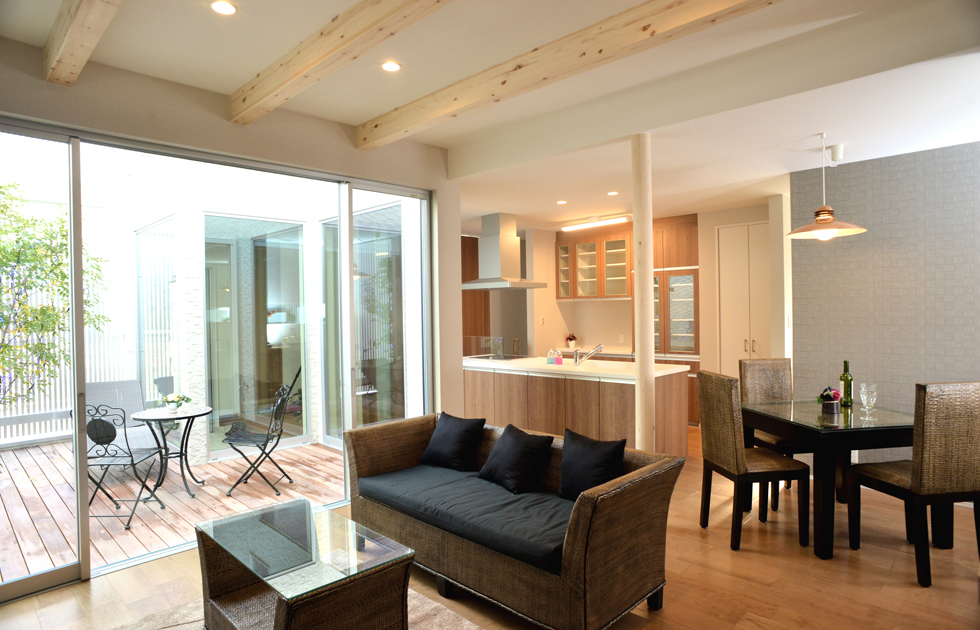 家の内と外を繋ぐ、開放感あふれる和みの空間。開口部を大きくとることで、部屋中に光を採り入れることができます。
